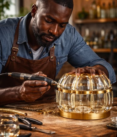 Nos artisans guyanais transforment le verre et le bois recyclés en objets uniques.